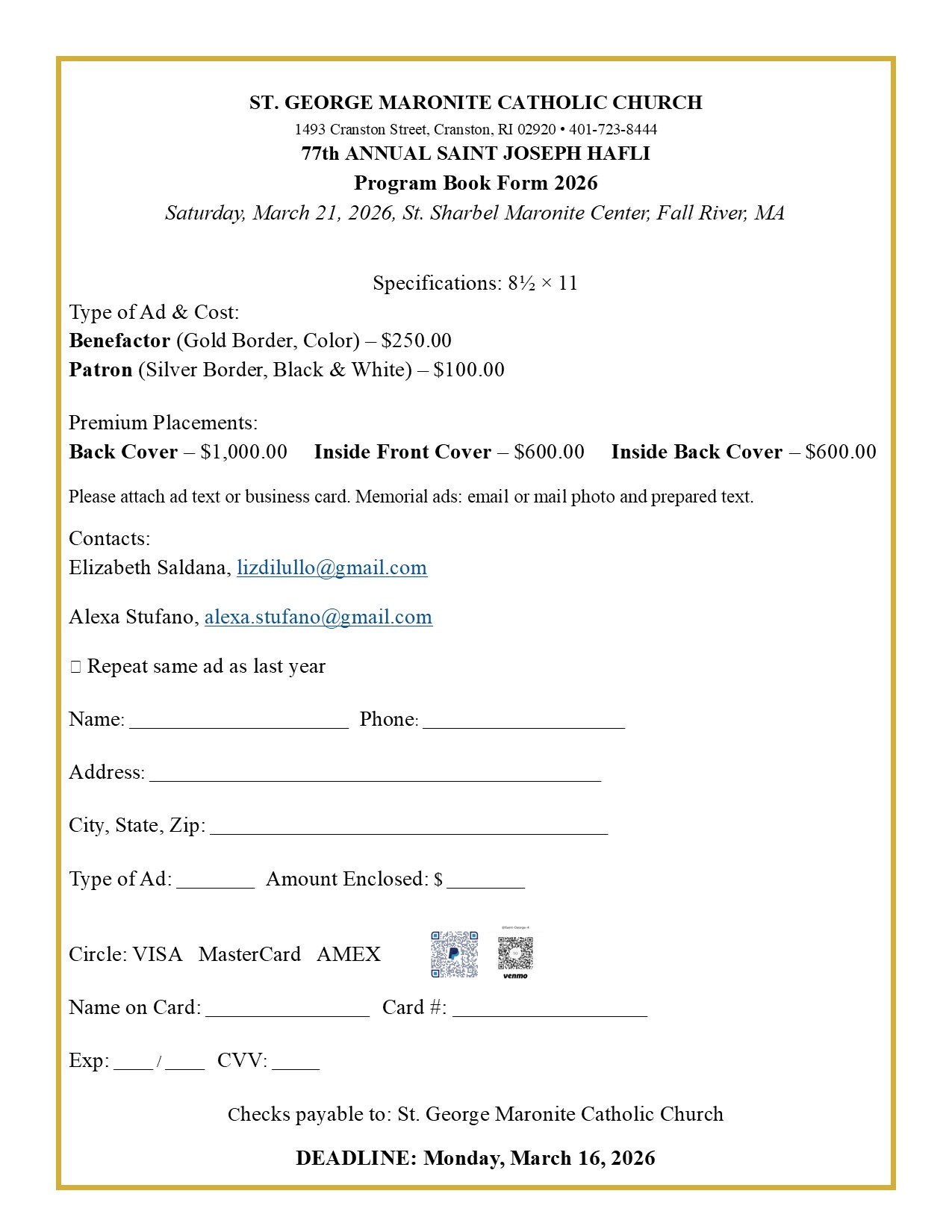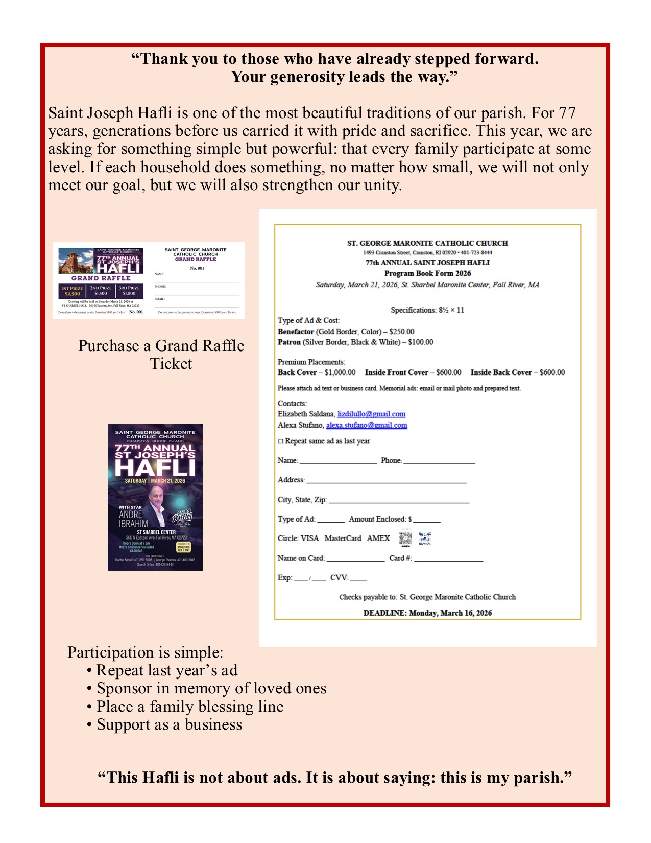 In these challenging times, the mission and ministry of St. George Maronite Catholic Church relies upon digital means more than ever before. To offset the costs associated with our website and associated digital tools, please consider becoming an annual sponsor. Many thanks to those businesses and individuals who have already committed to support the ministry of St. George. Your kind generosity is greatly appreciated.