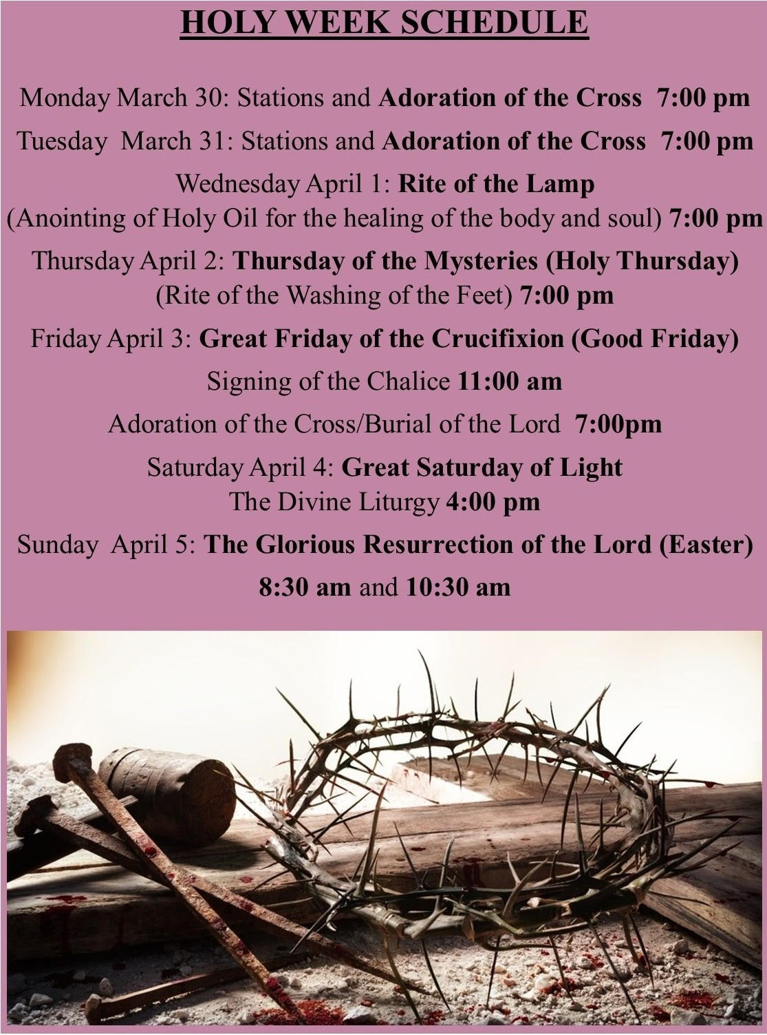 Sunday Morning: 8:30am - Latin Rite; 10:30am - Maronite